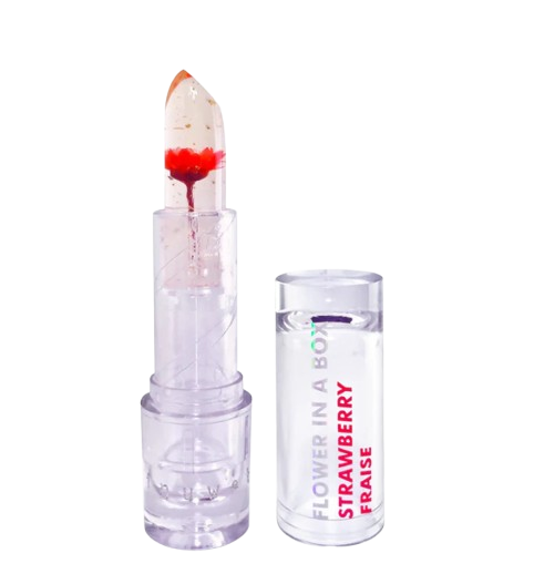 Este bálsamo labial com aroma de morango e textura derretida, não é pegajosa.