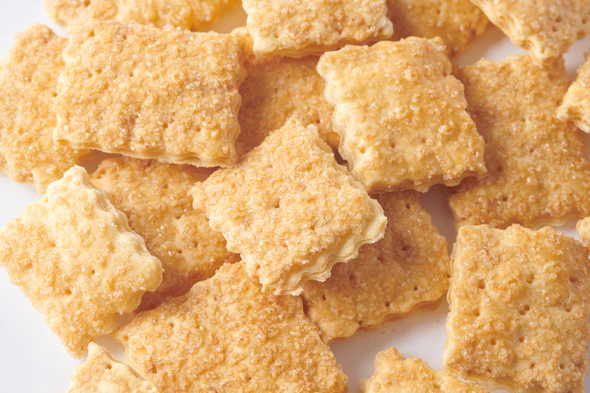 Perfeita harmonia do doce com o salgado. Formada por finas capas crocantes. Ligeiramente adocicada por cima, com açúcar granulado de cana. Perfeitas sem mais nada ou com queijo.