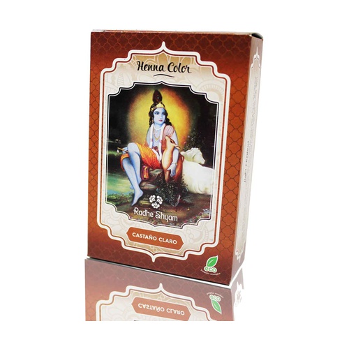 O Pó de Henna Castanho Claro Radhe Shyam é um corante 100% natural , certificado como orgânico, e com grande reputação no mundo da coloração natural para os cabelos, pinta os cabelos sem danificá-los.