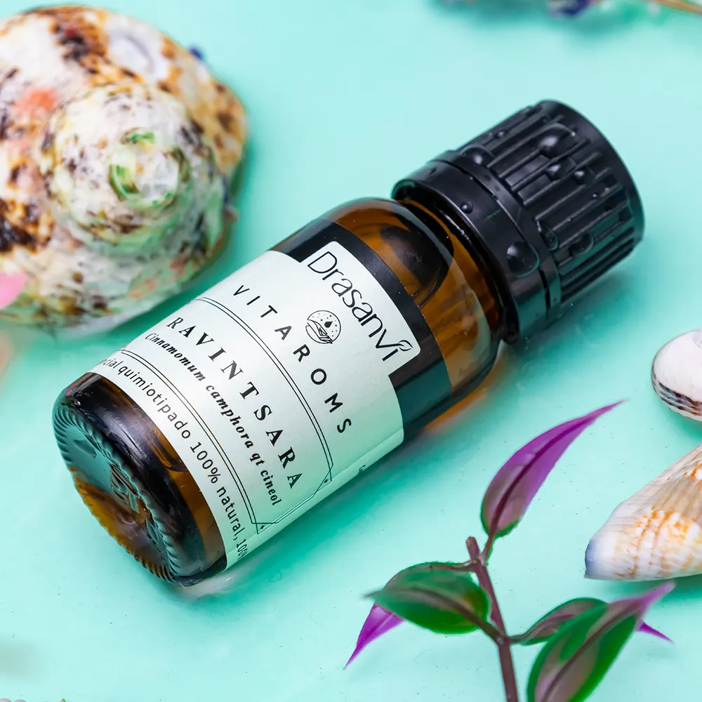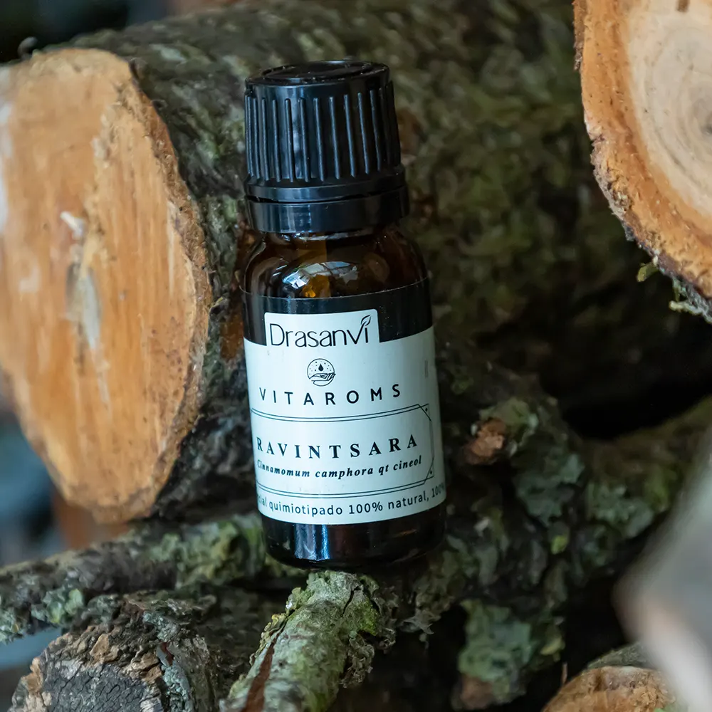 Ravintsara pode atingir até 15 metros de vegetação selvagem nas florestas tropicais de Madagáscar. Para ajudar a reforçar as defesas das crianças, aplicar 1 gota deste óleo essencial diluído numa colher de chá de óleo vegetal nas plantas dos pés com uma leve massagem, de manhã e à noite. Fortalece as defesas e ajuda a melhorar os sintomas das infecções virais. É antiviral e imunoestimulante